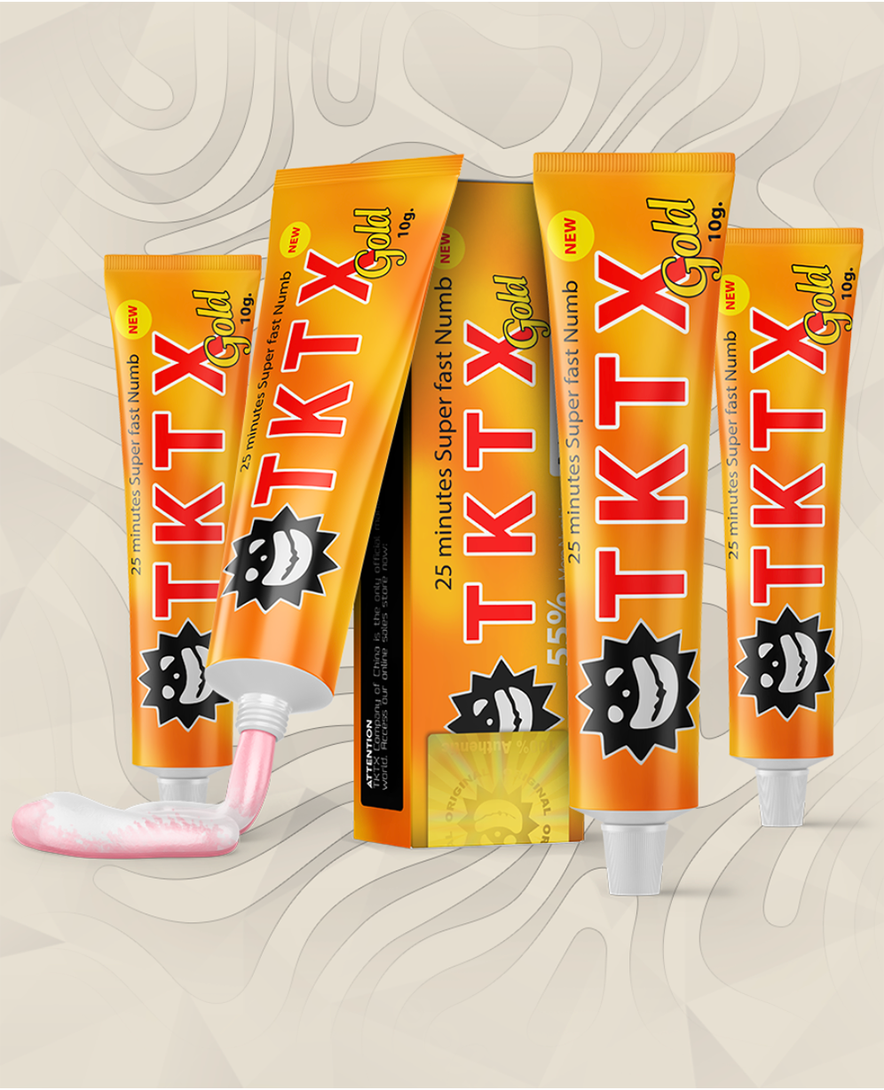 Dieses Set enthält alles, was du für eine angenehme Tattoo-Session brauchst: 3x TKTX Gold 99% Creme, 1x TKTX Numbing Spray und 1x TKTX Aftercare.